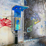 L’ambiance visuelle est celle d’un décor post-industriel, où la matière se décompose mais où la couleur des tags réinjecte une énergie brute, anarchique. Les couches de peinture arrachées, les fissures et la texture corrodée des murs se lisent comme une peau, une cicatrice urbaine. L’éclairage, filtré et presque irréel, accentue l’aspect fantomatique de l’endroit : on a l’impression que le temps s’est figé, que la voix qui aurait dû s’échapper de ce téléphone s’est perdue dans les murs.