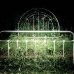 Cette photographie, à la fois poétique et énigmatique, capture l’étrange métamorphose d’un objet familier : un lit en fer forgé, autrefois symbole de repos et d’intimité, devenu le théâtre d’une renaissance végétale.